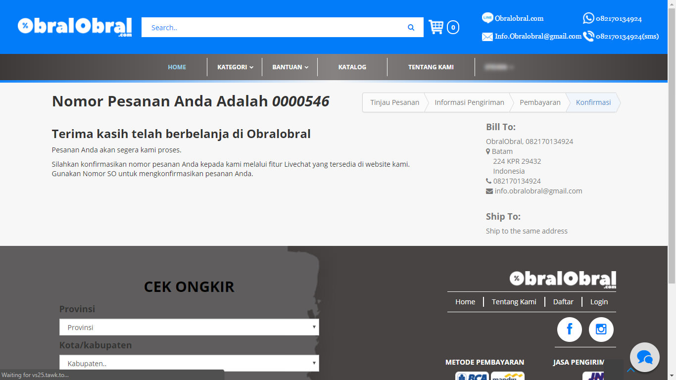 6. Pada tampilan Checkout, isilah setiap kolom sesuai dengan data Anda, jika sudah Anda dapat menekan "Confirm" jika ingin meninjau ulang pesanan Anda, Anda dapat mengklik "Return to Cart", Isi bagian Nama Pengirimin jika ingin dropship, jika tidak di isi maka akan dikirim dengan nama penerima