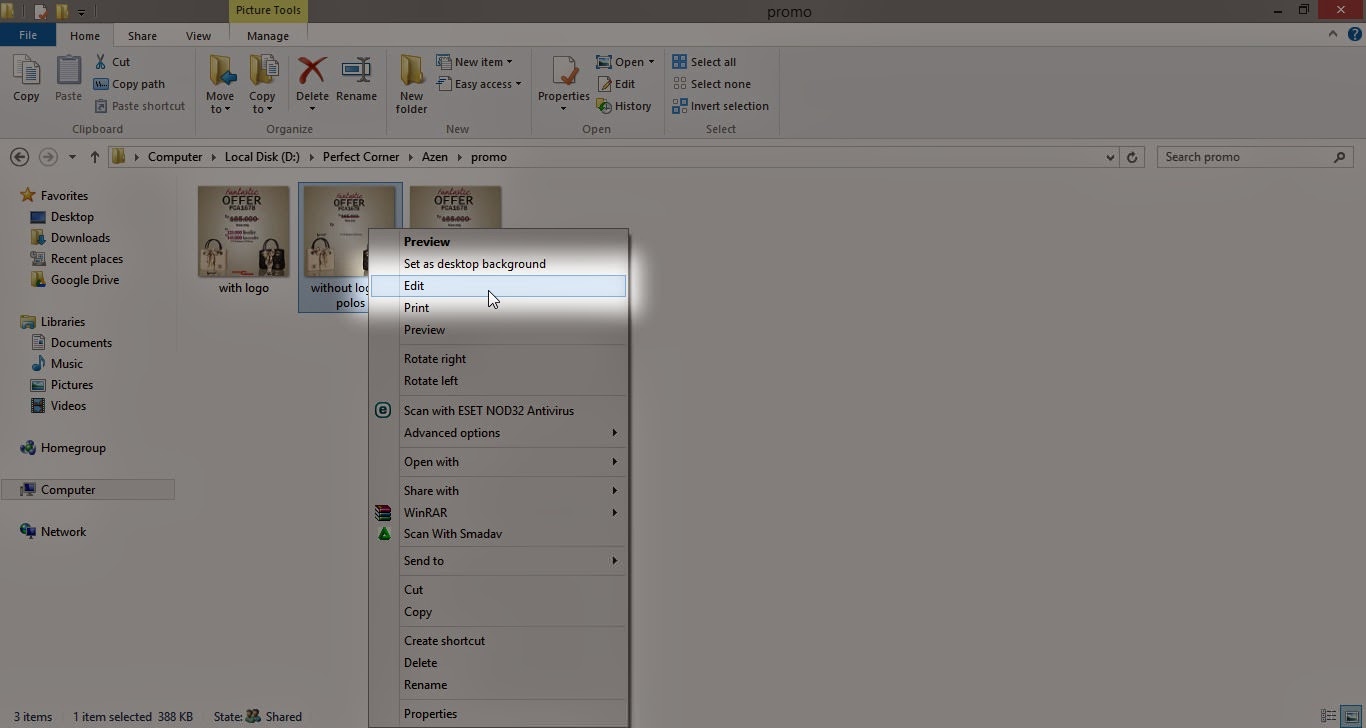 2. Kemudian klik kanan dan pilih "Edit" dengan "Paint".